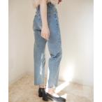 デニム スリット センタープレス テーパード パンツ レディース デニムパンツ