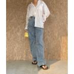 ジーンズ デニム デニムパンツ ハイウエスト センターシーム ワイドデニムパンツ / 美脚 脚長 ストレート レディース レディース