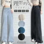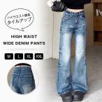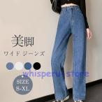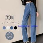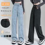 ワイドパンツ デニム ハイウエスト ウエスト調節可能 レディース ジーンズ デニムパンツ 春夏 きれいめパンツ 美脚 大きいサイズ 脚長効果 着痩せ おしゃれ