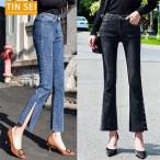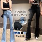 フレアパンツ デニムパンツ レディース カットオフ スーパーストレッチ ベルボトム ブーツカット ジーンズ 脚長 美脚パンツ フレアジーンズ