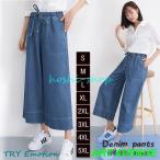 デニムパンツ ワイドパンツ ストレートパンツ レディース ジーンズ ウエストゴム 大きいサイズ denim 春物 春秋 楽チン 女の子 20代30代 パンツ ボトムス ズボン