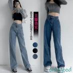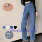ジーンズ デニム デニムパンツ デニムストレートパンツ ハイウエストジーンス 脚長ボトムス レディース