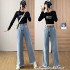 デニムパンツ レディース ウエストゴム 秋 冬 ワイド ゆったり ボトムス ジーンズ ジーパン Gパン カジュアル 韓国ファッション 高身長 爆買
