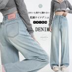 【saleで2180円】ワイドパンツ デニム ハイウエスト ウエスト調節可能 レディース ジーンズ デニムパンツ 春夏 秋冬 美脚 脚長効果 着痩せ 爆買