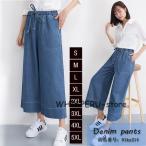 パンツ デニム ガウチョパンツ デニムパンツ ジーンズ ボトムス レディース ストレート 9分丈 ベルト ワイドパンツ ワイド ゆったり 体型カバー 着痩せ 秋 冬
