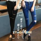 【15日限定10%OFFクーポン】スキニーパンツ デニムパンツ レディース デニムジーンズ 切りっぱなし裾 ジーパン 9分丈 ロング丈 長パンツ ロングパンツ タイトパンツ ハイウエスト ジーンズ クラッシュ カットオフ キレイめ ストレッチ 脚長見え効果 通勤 通学 送料無料