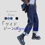 ジーパン レディース ロールアップ ワイドジーンズ 九分丈 美脚 デニムパンツ 春 秋 ゆったり 体型カバー ワイドパンツ お洒落 ジーンズ レトロ
