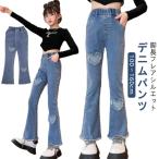 デニムパンツ 160cm フレアパンツ ジーンズ ロングパンツ キッズ 子供服 ボトムス ジュニア 長ズボン おしゃれ 女の子 ジーパン 脚長シルエッ