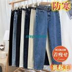 デニム パンツ レディース 裏起毛 ジーンズ 韓国風 ハイウエスト あったか 着痩せ ボア付き ボ 秋 冬 ゆったり 脚長効果 美脚 防寒 保温