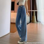 ワイドパンツ デニムパンツ レディース デニムワイドパンツ ロングパンツ ウエストゴム 大きいサイズ 脚長効果 ジーンズ ボトムス ズボン 春物 秋服 ガーリー