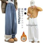 レディース デニムパンツ 裏起毛 ハイウエスト デニム パンツ 秋 冬 ワイドパンツ ゆったり 脚長効果 ジーンズ 韓国ファッション あったかい 美脚