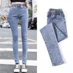 大きいサイズレディーススキニージーパンデニムジーンズパンツストレッチウエストゴムポケット美脚脚長