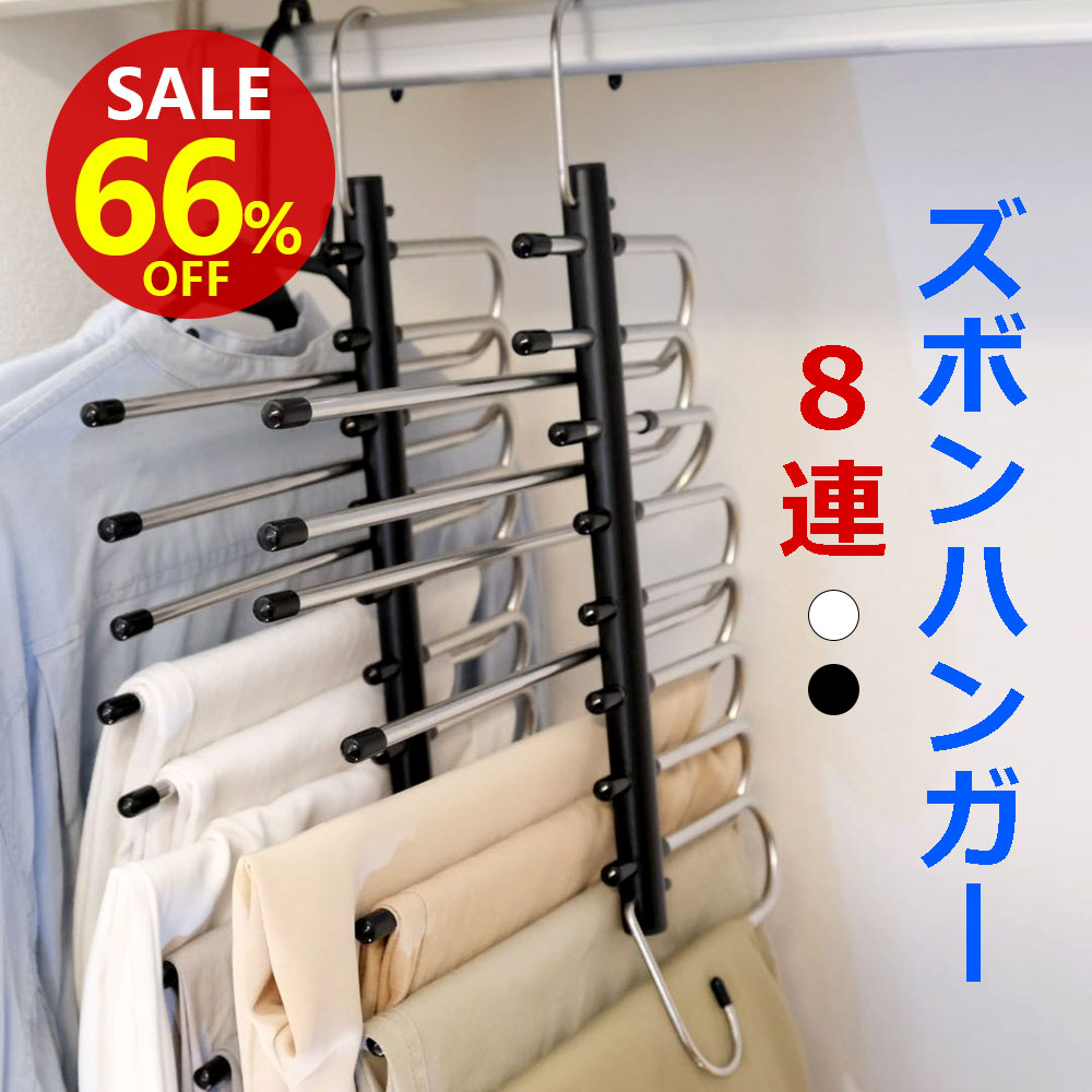 【★半額以下!楽天スーパーSALE限定★】【レビューで特典】ズボンハンガー パンツハンガー スラックスハンガー 8連 収納 ステンレス ズボン 省スペース 折り畳み スラックス タオル すべらない 滑り止め ジーンズハンガー クリップ ボトムハンガー 折り畳み