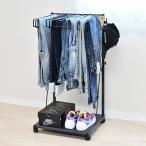 ストロングタフハンガー 耐荷重100kg ハンガーラック スチール メッキ パイプハンガー キャスター スリム コート ジーンズ ズボン 2段 玄関 収納 代引不可