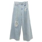 ヴェトモン VETEMENT ロゴ デストロイ バギーデニム パンツ ジーンズ クラッシュ加工 ワイド 31 青 ブルー ☆AA★ メンズ