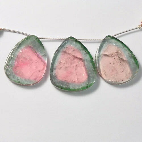 希少な大粒スイカトルマリンスライスブリオレットビーズ(3個)
