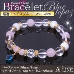 パワーストーン ブレスレット ブレストップに11月の誕生石 スイスブルートパーズ ローズクォーツ6mm PW-3469