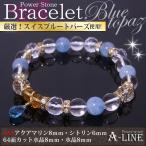 送料無料 パワーストーン ブレスレット ブレストップに11月誕生石 スイスブルートパーズ シトリン8mm 高級ケース付き PW-3475