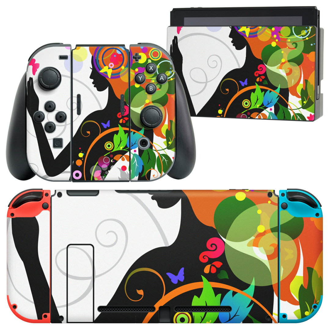 igsticker Nintendo Switch 用 デザインスキンシール 任天堂 ニンテンドー スイッチ 専用 本体ドック Joy-Con Joycon ジョイコン 専用 ゲーム機 カバー アクセサリー フィルム ステッカー 002616 花 蝶 人物 カラフル