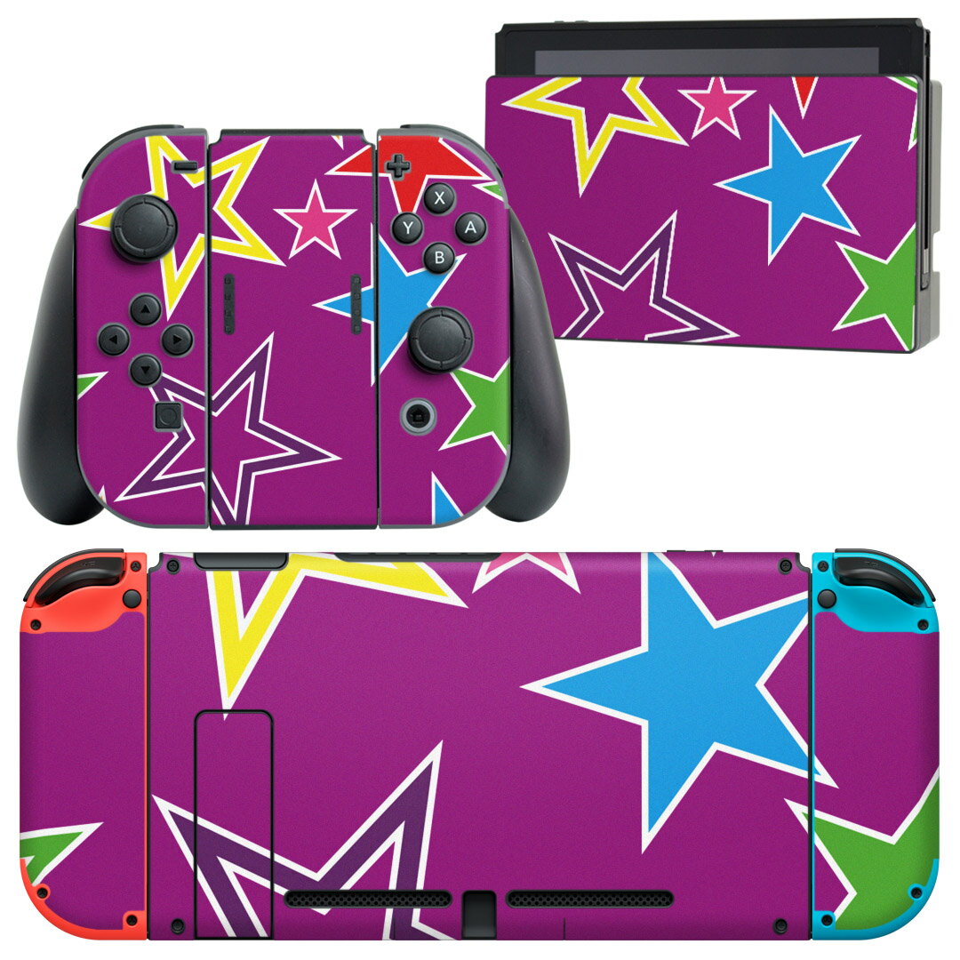 igsticker Nintendo Switch 用 デザインスキンシール 任天堂 ニンテンドー スイッチ 専用 本体ドック Joy-Con Joycon ジョイコン 専用 ゲーム機 カバー アクセサリー フィルム ステッカー 003901 星 カラフル 紫