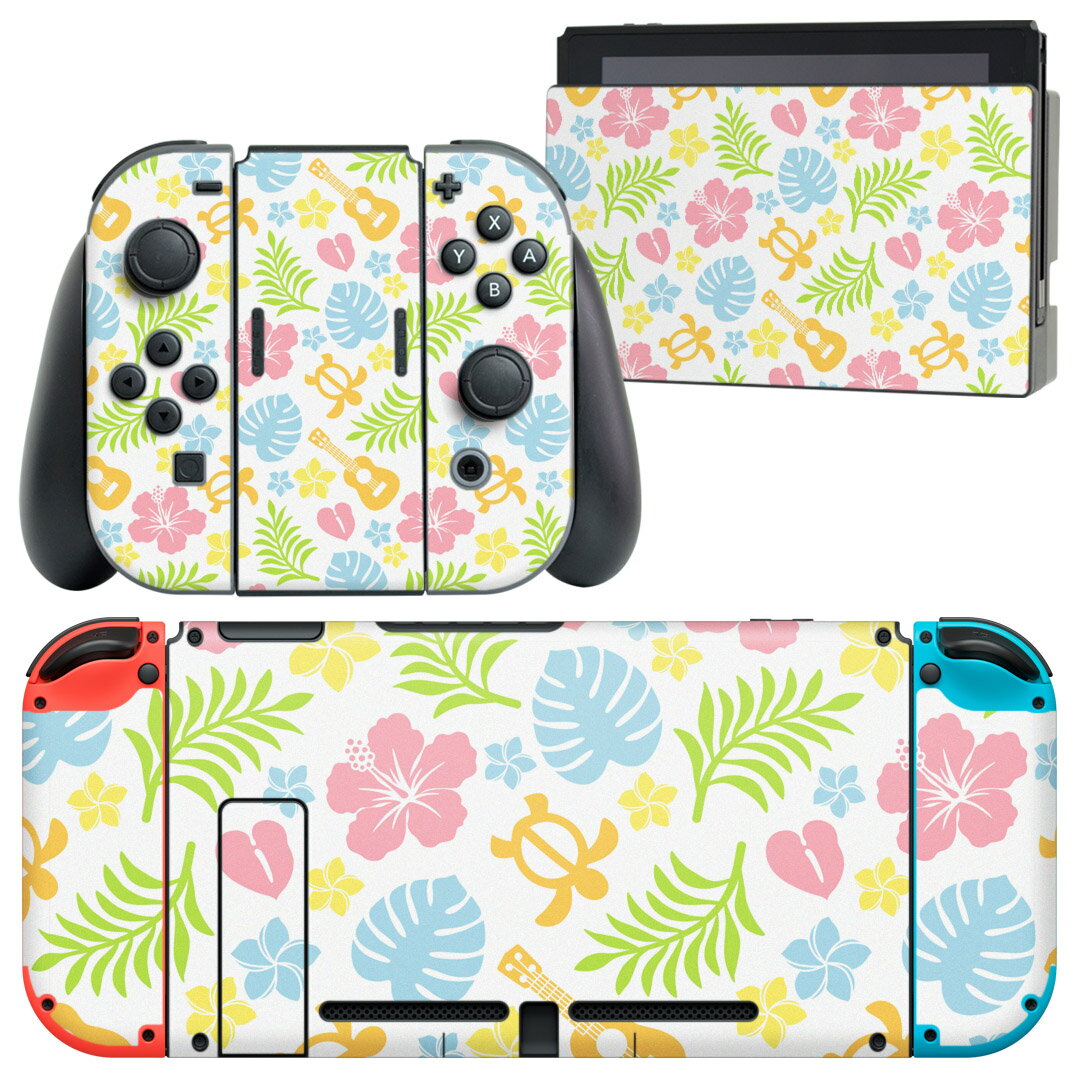 igsticker Nintendo Switch 用 デザインスキンシール 任天堂 ニンテンドー スイッチ 専用 本体ドック Joy-Con Joycon ジョイコン 専用 ゲーム機 カバー アクセサリー フィルム ステッカー 005084 ハイビスカス ハワイ カラフル