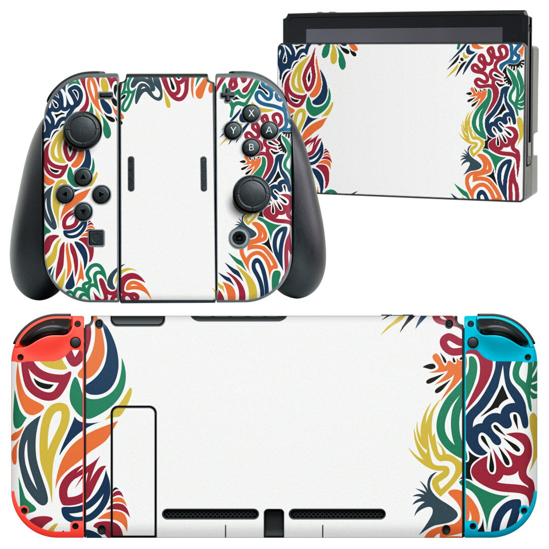 igsticker Nintendo Switch 用 デザインスキンシール 任天堂 ニンテンドー スイッチ 専用 本体ドック Joy-Con Joycon ジョイコン 専用 ゲーム機 カバー アクセサリー フィルム ステッカー 008818 カラフル 模様 フレーム