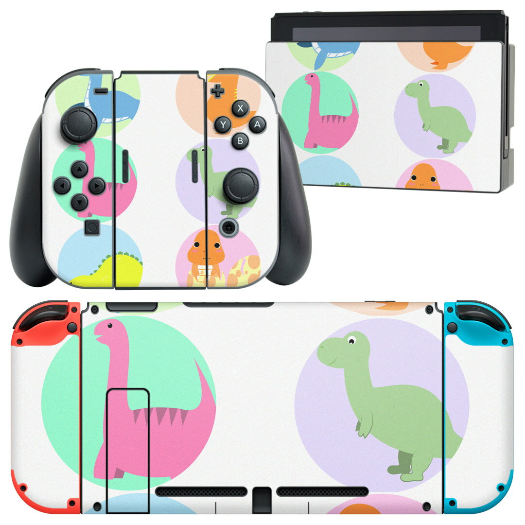 igsticker Nintendo Switch 用 デザインスキンシール 任天堂 ニンテンドー スイッチ 専用 本体ドック Joy-Con Joycon ジョイコン 専用 ゲーム機 カバー アクセサリー フィルム ステッカー 009819 恐竜 こども カラフル