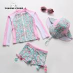 水着 セパレート キッズ 3点セット 女の子 ラッシュガード 上下セット スイムキャップ 長袖 スカパン 帽子付 uvカット 子供