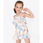 \20%OFFクーポン!/キッズ 水着 女の子 ワンピース オールインワン ラッシュガード スイムキャップ 2点セット 110 120 130 140 長袖 袖あり 花柄 フリル 紫外線対策 日焼け対策 ハーフジップ 前開き ジッパーカバー ハイネック 裏地付き 幼稚園 保育園 小学生 白