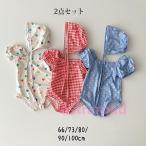 ベビースイムウェア 水着 キッズ キャップつき 2点セット UV ロンパース 女の子 男の子 子供 ベビースイミング かわいい 80 90 100 110 120 130 ラッシュガード