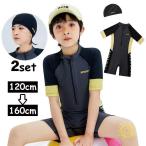水着 男の子 2点セット スイムキャップ キッズ スイムウェア 連体水着 ボーイ トランクス レギンス ラッシュガード スイミング スポーツウエア おしゃれ 半袖