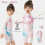 2点セット 水着 女の子 ラッシュガード 露出控えめ キッズ スクール水着 キッズ水着 長袖 スイムキャップ 子供 ガール 一体型 オールインワン 弾性 UVカット