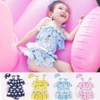 子供 水着 サロペット ワンピース キッズ 水着 女の子 2点セット 水泳帽 スイムキャップ付★ フリル プリント 水着 オールインワン スイムウェア ジュニア