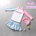 3点セット 水着 セパレート キッズ 3点セット 女の子 ラッシュガード 上下セット スイムキャップ 長袖 スカパン 帽子付 子供