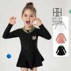 キッズ水着 女の子 ガールズ ワンピース水着 スイムキャップ 可愛い ワンポイント ライン入り 長袖 日焼け対策 体型カバー 水遊び プール 海水浴 夏休み 子供用