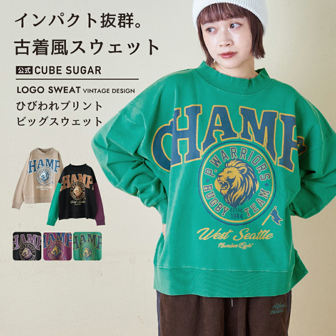 【ブラックフライデー★22%OFF】【秋冬新作】ロゴスウェット / 公式 CUBE SUGAR パウダー加工 スウェット ビッグ プリント プルオーバー (5色): アメカジ レディース トップス プルオーバー トレーナー スエット 古着風 長袖 ロゴ カジュアル キューブシュガー