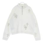 CHROME HEARTS クロムハーツ Y NOT ハラコレザー クロスパッチ ハーフジップスウェット ホワイト