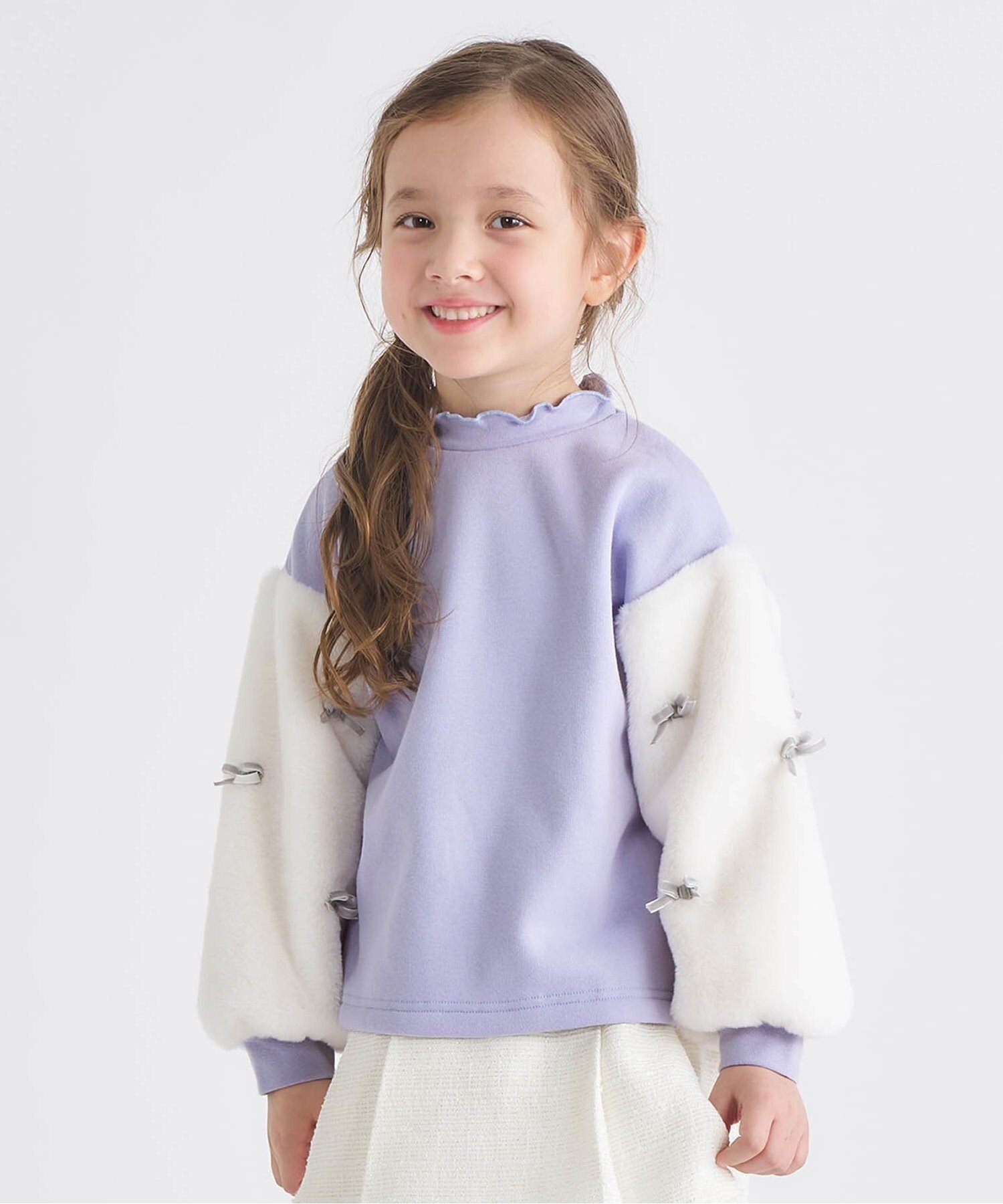 【SALE/10%OFF】devirock ガールズ 袖チュール トレーナー トレーナー トップス 25AW デビロック トップス スウェット・トレーナー ホワイト ブラック パープル ブルー