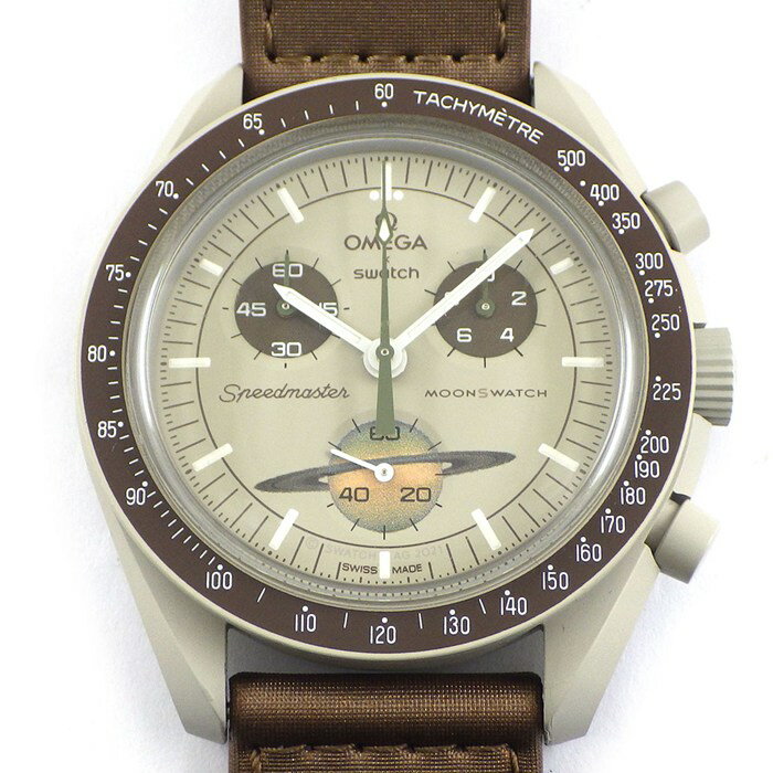 スウォッチ×オメガ Swatch×OMEGA 腕時計 ムーンスウォッチコレクション ミッション トゥ サターン SO33T100 クロノグラフ タキメーター スモールセコンド ブラウン文字盤 ベージュ バイオセラミック ブラウン ベルクロストラップ クオーツアナログ 【箱・保付き】 【中古】
