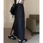 カーゴスカート ロング 大人 Iライン ロングスカート スリット ボトムス レディース ボタン ファスナー 黒 春 夏 秋