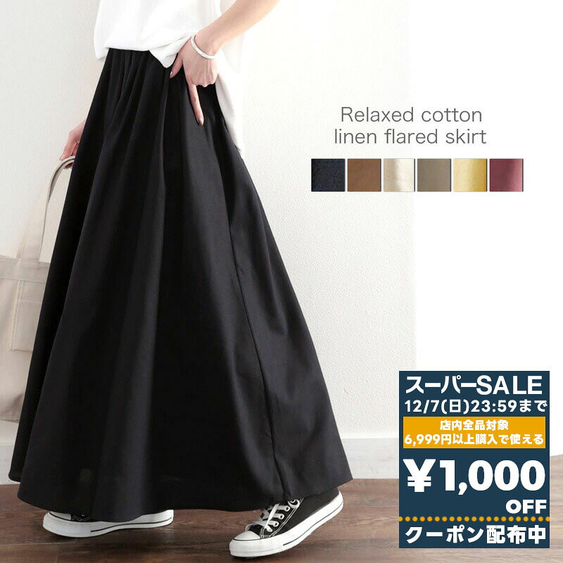 ギャザースカート リネンスカート 麻 ミモレ丈 ボリュームたっぷり グリーン フリーサイズ ウエストゴム送料無料