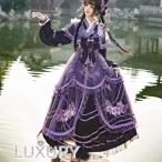 華ロリ 中華ロリ オーバーワンピース + クロス襟ワンピース + スカート 3点セット ロング丈 フリル シフォン クラシカル 上品 中国風 チャイナ 優雅 イベント