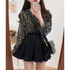 花柄ロングプリーツスカート フラワープリント シフォン スカート きれいめ 小花柄 ロング丈 女子会 デート