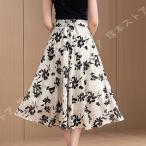 フレアスカート シフォン レディース 花柄 ハイウエスト Aライン 大幅 シフォン 体型カバー キレイめ カジュアル 裏地あり ロングスカート 普通着 ボヘミア