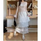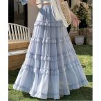 スカート ティアードフリルシフォンフレアスカート