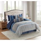 Madison Park 快適な掛け布団セット カジュアルモダンデザイン オールシーズン寝具 お揃いのベッドスカート 装飾枕 コリン スエードブルーグレーキング(104インチx92インチ) 7ピース