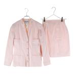 CHANEL シャネル セットアップ ココマークボタン 4B ノーカラー テーラードジャケット タイトミニスカート ピンク レディース
