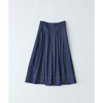 【SALE 50%OFF】[242105]ina(イナ) 裾フリンジ タック スカート 綿 麻 マドラスチェック リネン コットン