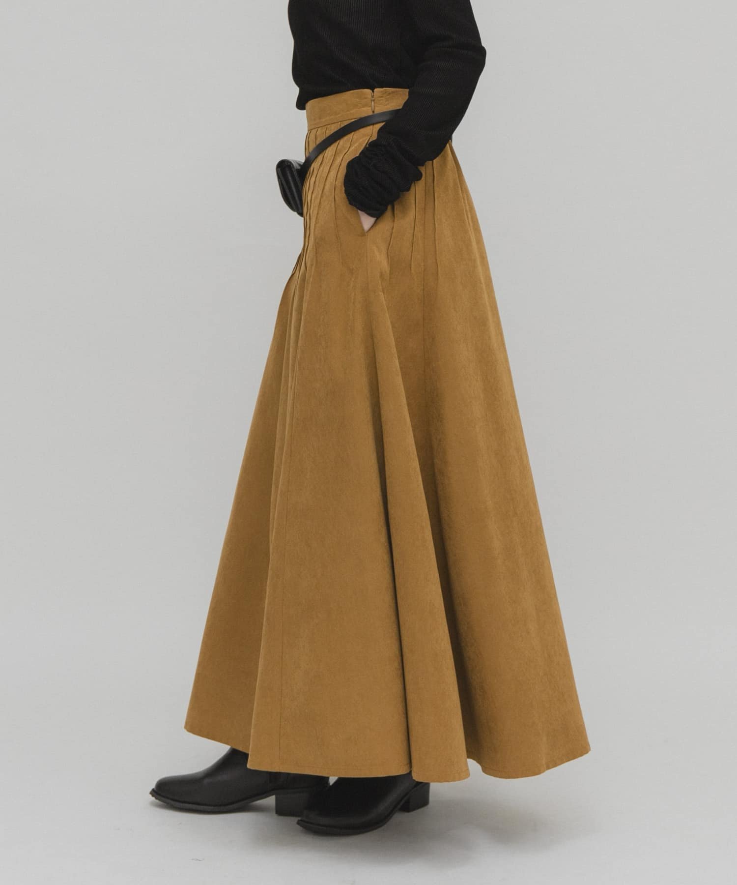 スカート 「2025AW」タックフレアロングスカート