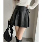 スカート リボンタック合成皮革ミニスカート